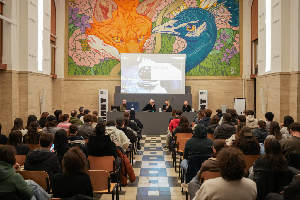 Accanto alla dimensione creativa, il progetto apre un ragionamento concreto sul “costo” dell’IA oggi: consumo di energia, risorse e infrastrutture. In questo quadro si colloca il lavoro di SAILab (Siena Artificial Intelligence Lab), guidato dal prof. Gori, orientato verso approcci meno energivori e più distribuiti, capaci di superare l’idea di sistemi unici e concentrati. L’ipotesi di una IA decentralizzata, connettiva e accessibile, viene posta come alternativa possibile alla logica della centralizzazione totale rappresentata nel mondo del Neurocene.